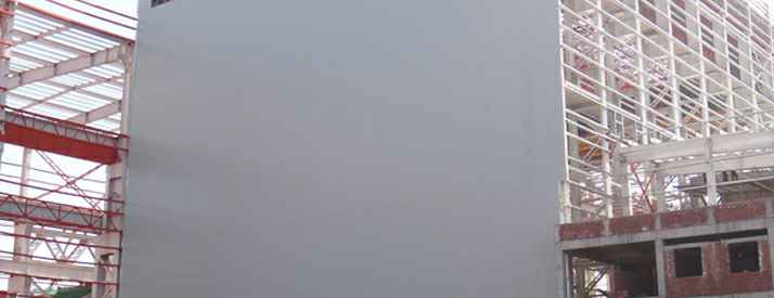工程,包括总装车间、试验大厅、铁芯车间、线圈车间和绝缘件车间、库房一。工程高为27.5米。为了确保中电装备公司的项目实