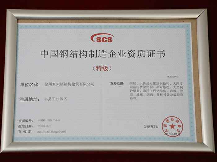 • 中国钢结构制造企业资质证书